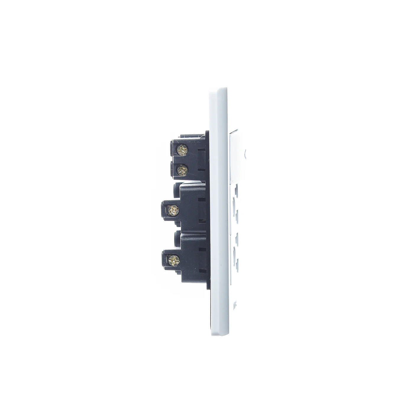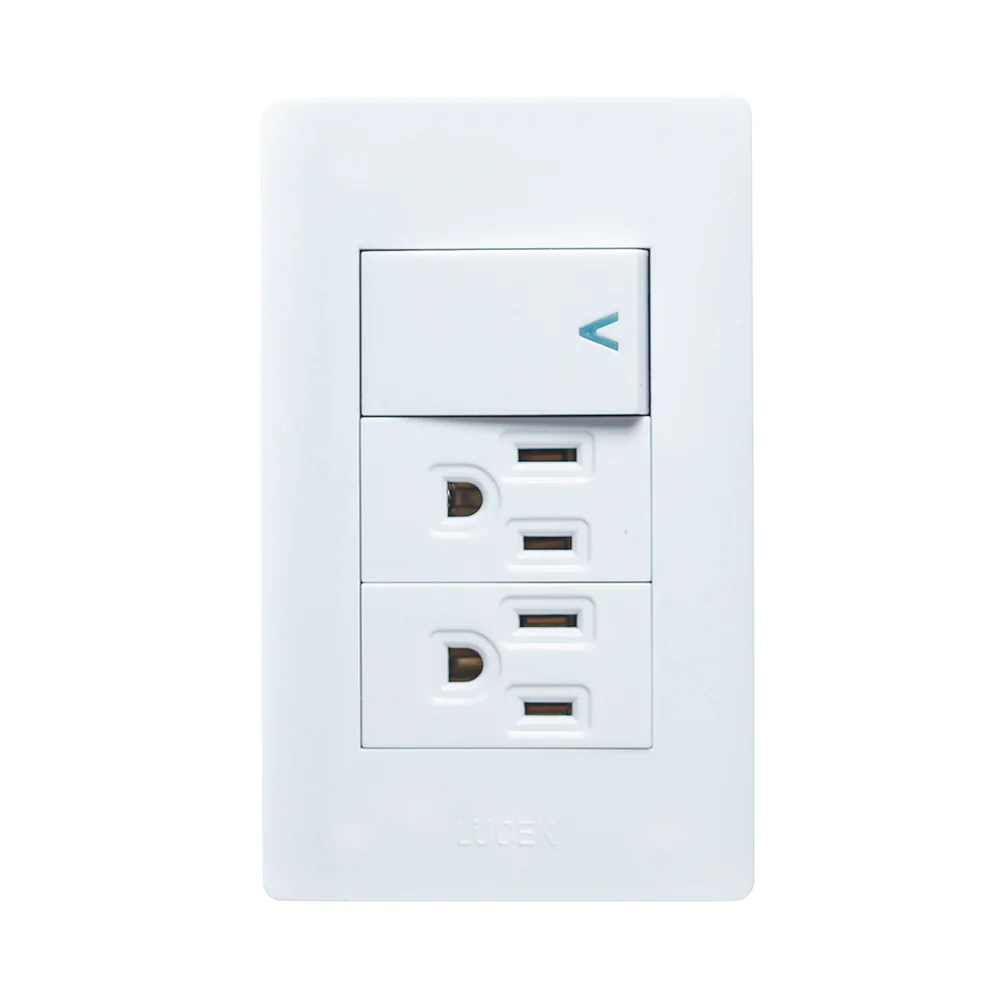 Placa con interruptor y 2 contactos sencillos de 1 módulo. Muy económica y fácil de instalar.