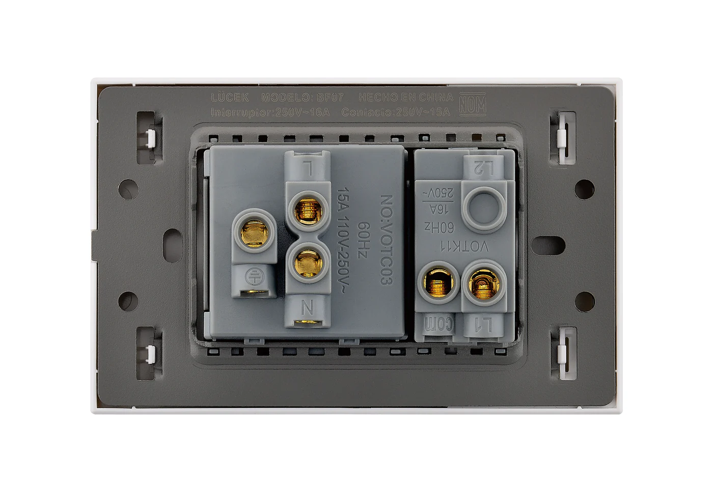 BF07-B PLACA PLANA CON 1 INTERRUPTOR SENCILLO Y 1 CONTACTO DE 1.5 MÓDULOS FLAT BLANCA