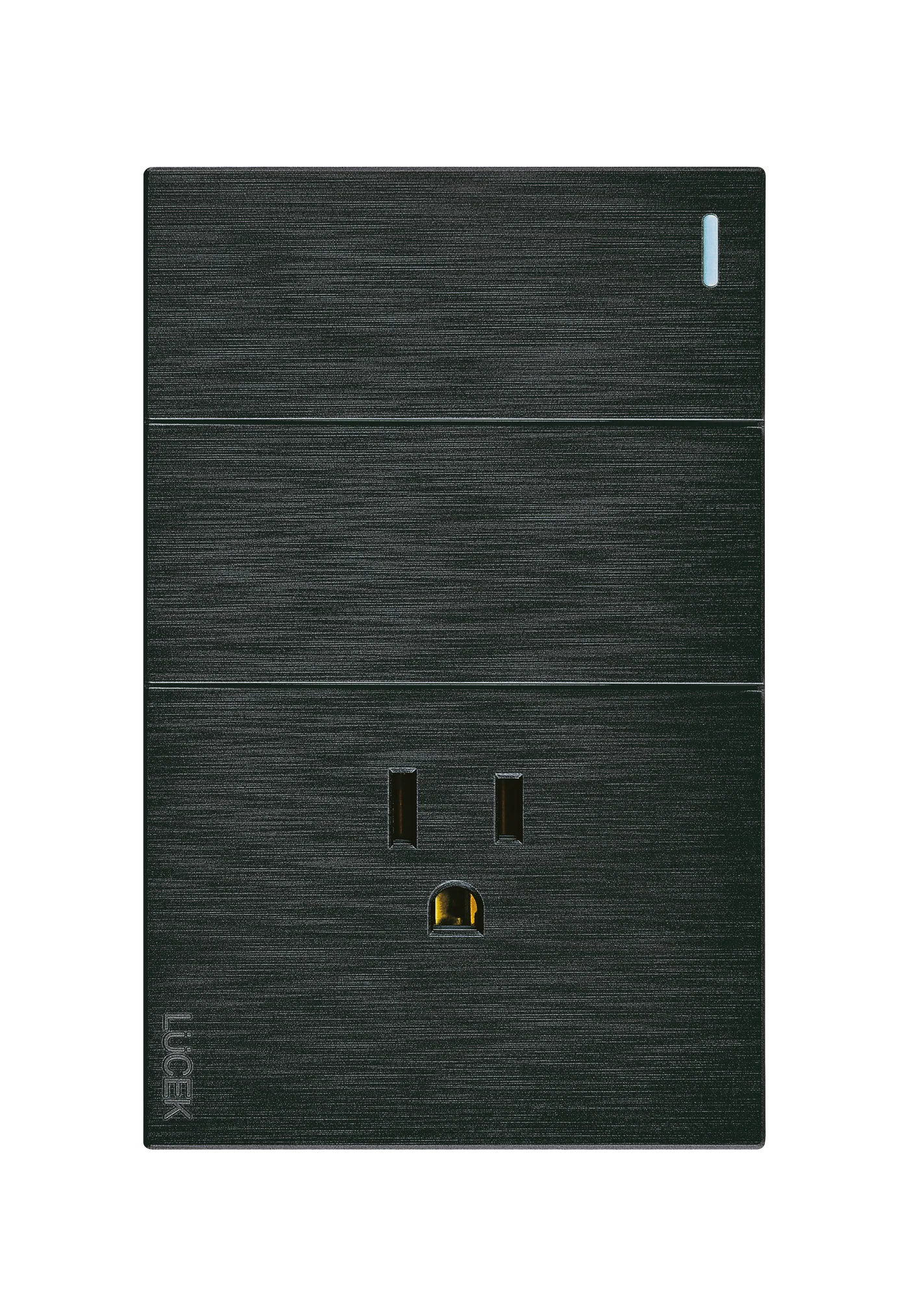 PLACA PLANA CON 2 INTERRUPTORES SENCILLOS Y 1 CONTACTO DE 1 MÓDULO FLAT NEGRA.