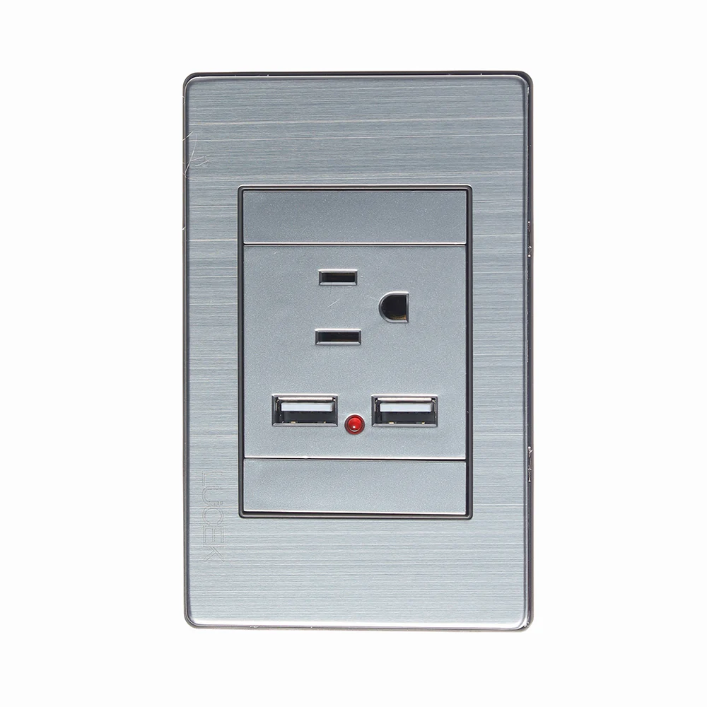 Placa metálica con dos tomas USB y un contacto, plateada. 2.1 A. Acero inoxidable. Carga rápida y eficaz. Fácil de instalar. Excelente calidad. Garantizada por 5 años. Proporciona una vista más estética.