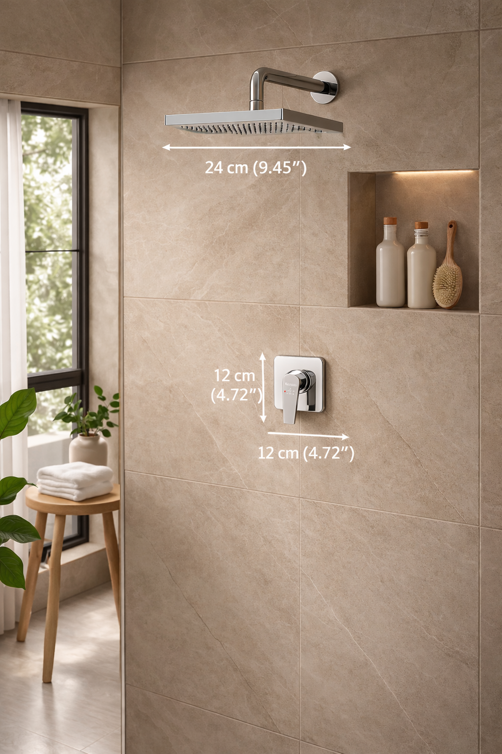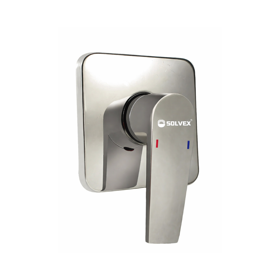 Monomando satinado para regadera, sin desviador integrado. Proporciona control suave de flujo y temperatura. Su acabado ayuda a disimular huellas y rayas, ideal para baños modernos.