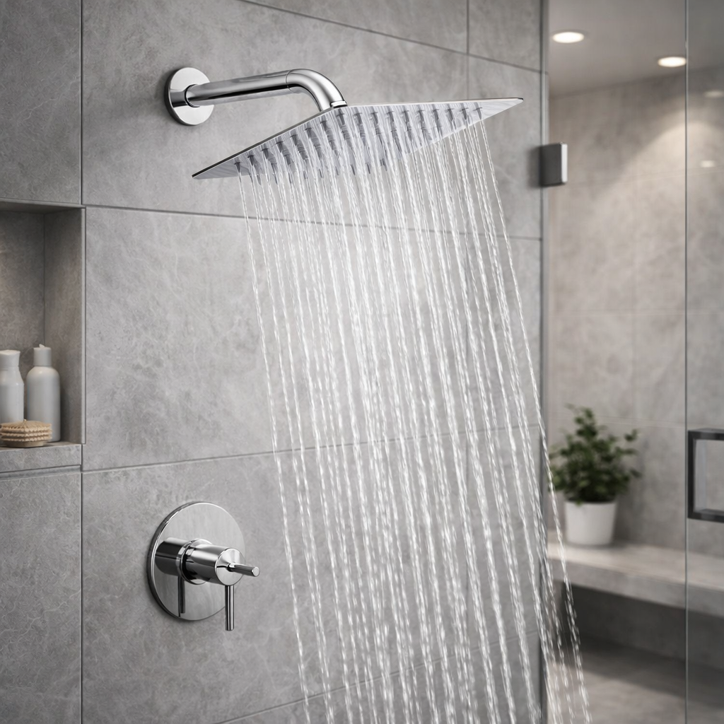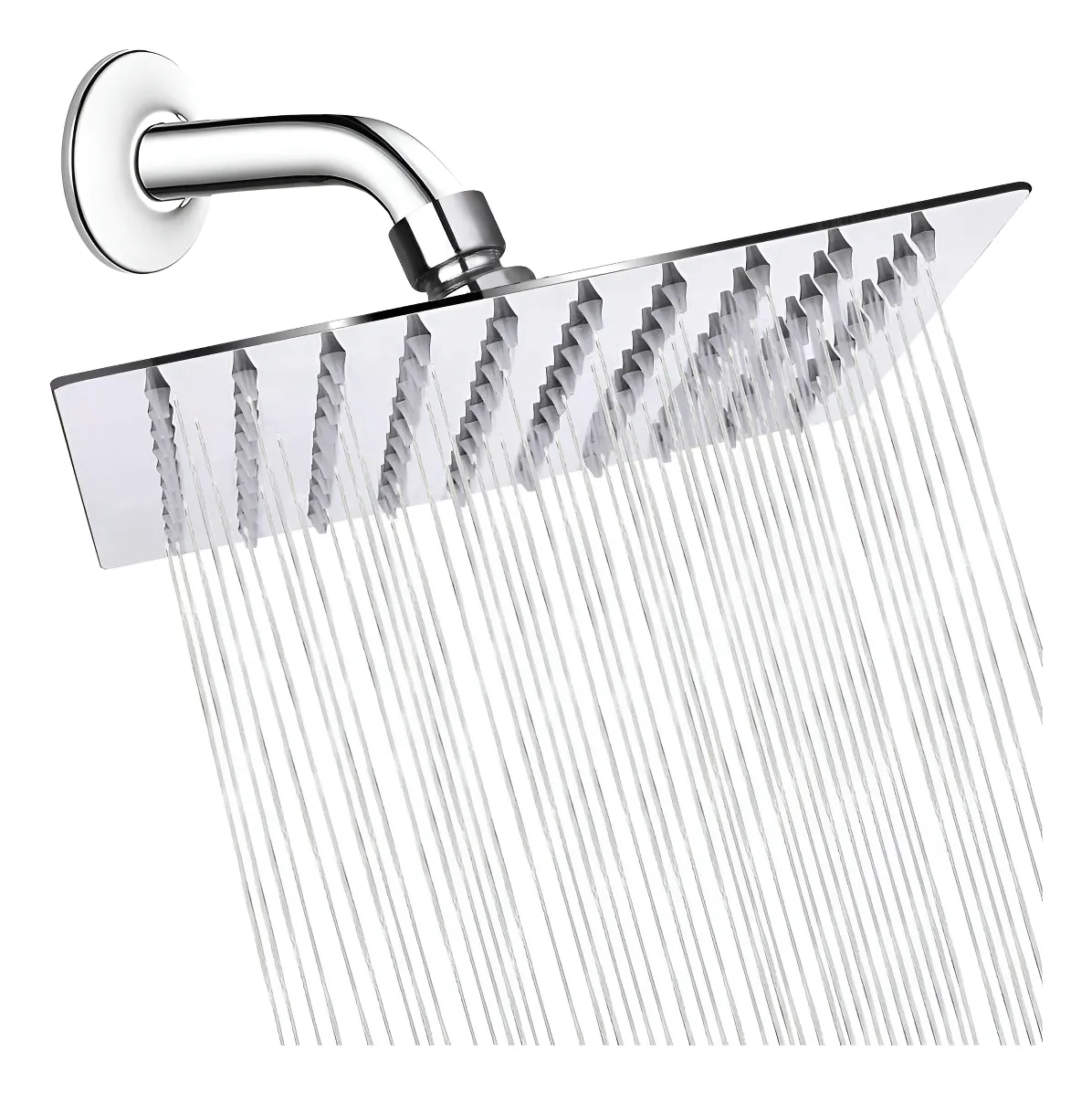 Regadera cuadrada de 8 pulgadas con acabado cromado brillante. Ofrece un flujo tipo lluvia amplio y uniforme, ideal para una experiencia de baño más relajante. Su diseño delgado y moderno la hace perfecta para baños contemporáneos.
