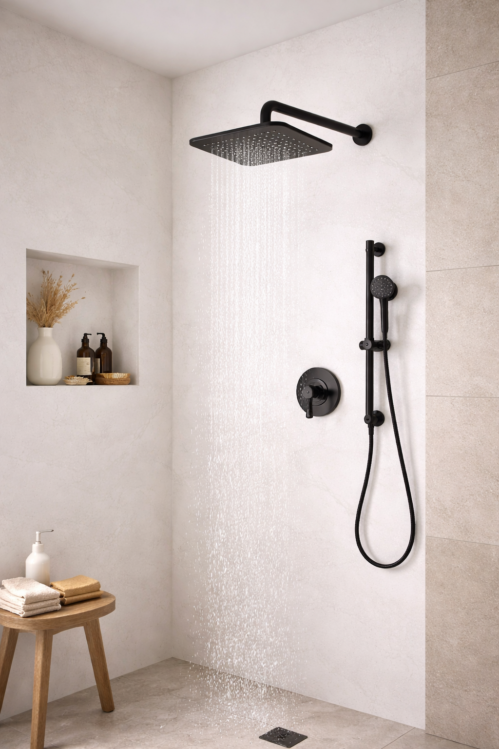 Regadera tipo lluvia de 8 pulgadas con acabado negro mate. Aporta un estilo elegante y minimalista a baños modernos. Ofrece amplio caudal y dispersión uniforme del agua. Fabricada en materiales duraderos y anticorrosivos.