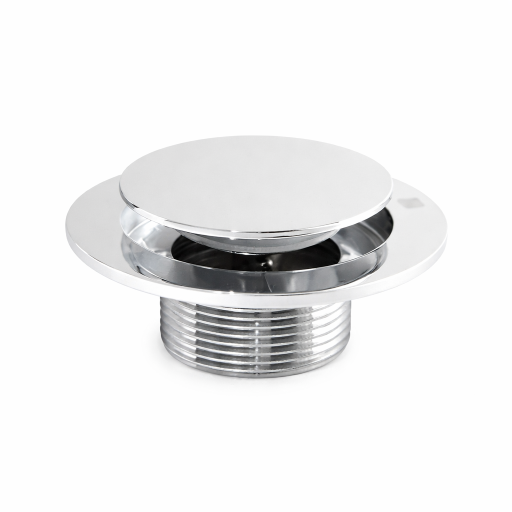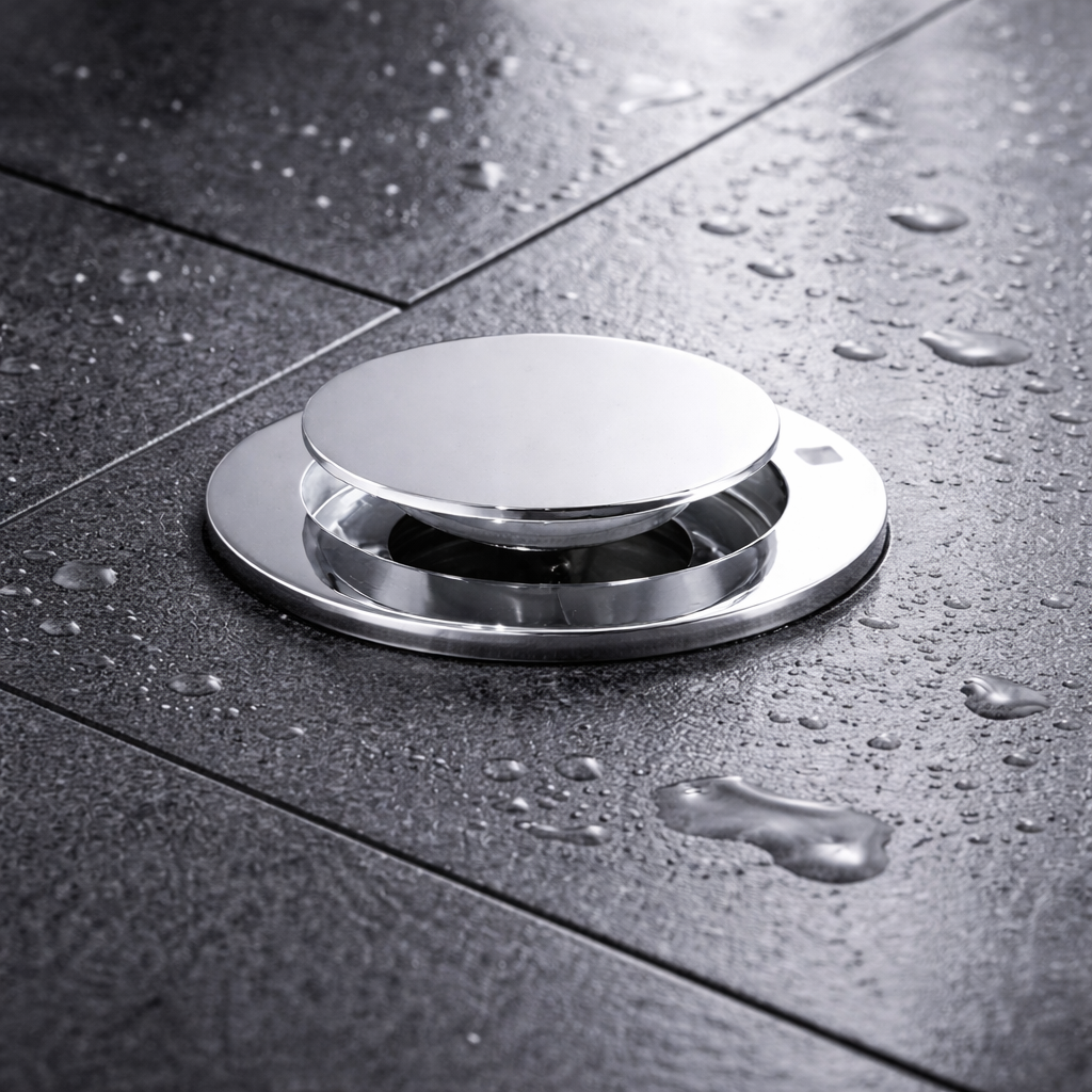 El resumidero redondo de push de 3 ½ pulgadas está fabricado en metal con acabado cromado color plata, ofreciendo alta resistencia a la corrosión y larga durabilidad. Su sistema push permite abrir y cerrar fácilmente con un solo toque, mientras que su mecanismo anti-cucarachas ayuda a prevenir el paso de plagas y malos olores. Ideal para desagües a nivel de piso en baños y áreas húmedas, brindando funcionalidad y un acabado moderno y elegante.