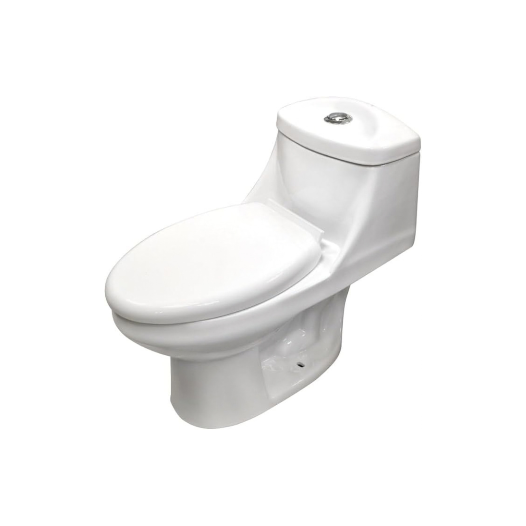 El W.C. One Piece Rimini está fabricado en porcelana vitrificada con acabado brillante, ofreciendo un diseño alargado de una sola pieza que aporta elegancia y fácil limpieza. Cuenta con sistema Dual Flush para una descarga eficiente de sólidos y líquidos con bajo consumo de agua (4.8 L por descarga), ayudando al ahorro sin sacrificar rendimiento. Incluye asiento de cierre lento para mayor comodidad y durabilidad, ideal para baños residenciales o de espacios premium que buscan funcionalidad y estética moderna.